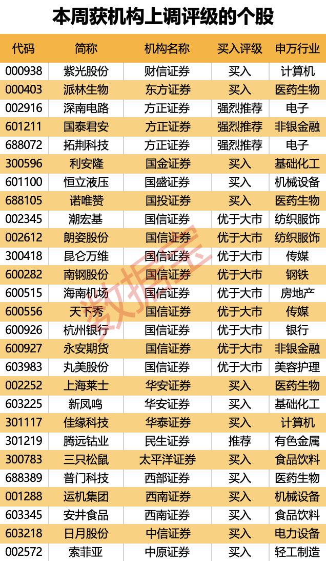 本周机构最新关注个股曝光 27股获券商上调评级