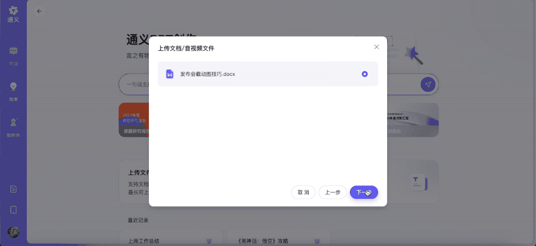 上传文件生成PPT