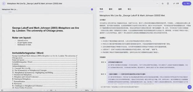 在阅读助手,各种格式的文档/论文/图书,包括PDF(含扫描件)、word、图片、HTML、Markdown、EPUB、Mobi,无论是网页链接还是播客链接,都能被精准速读。