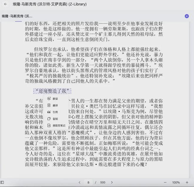 上手测试过程中,我们喂给了它两本书,分别是193页、英文版的《我们赖以生存的隐喻》,和500页、中文版的《埃隆·马斯克传》。