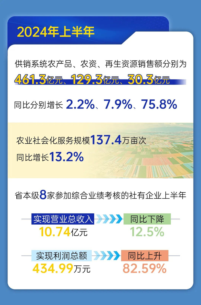 今年上半年,全省供销系统累计实现购进总额809.5亿元,同比增长5.7%;实现销售总额939.1亿元,同比增长3.4%,经济总体呈现平稳运行态势。