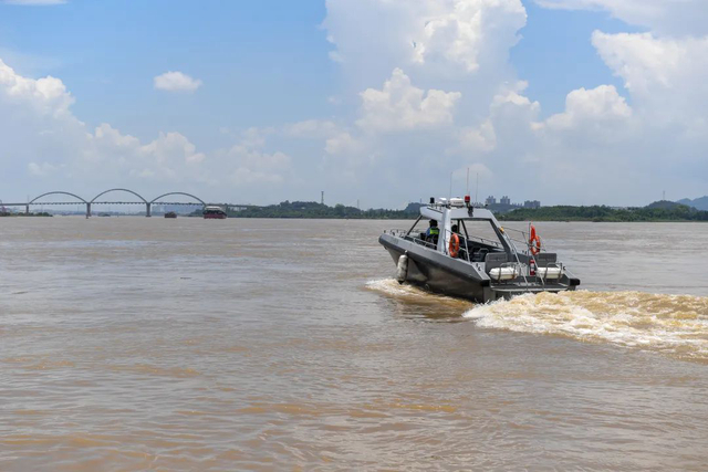 江门市公安局打私支队民警在西江巡逻。