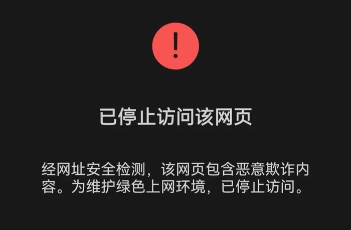 好在不少网友预警识破了骗局,相关部门也及时出手。截至8月31日晚间,短信链接已经不能打开,提示“经网址安全检测,该网页包含恶意欺诈内容。为维护绿色上网环境,已停止访问”。