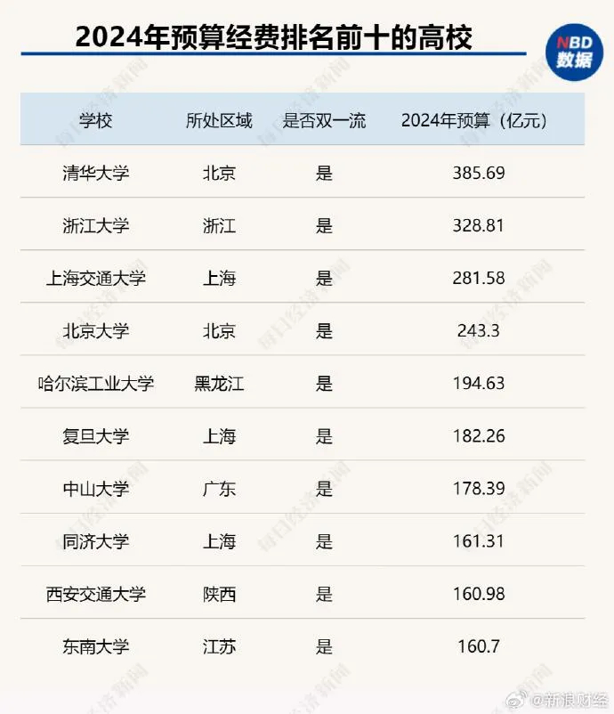 比如,这两年哈工大预算经费就暴增50亿,以最高35%的增长幅度杀入高校预算榜前五,预算直逼两百亿。