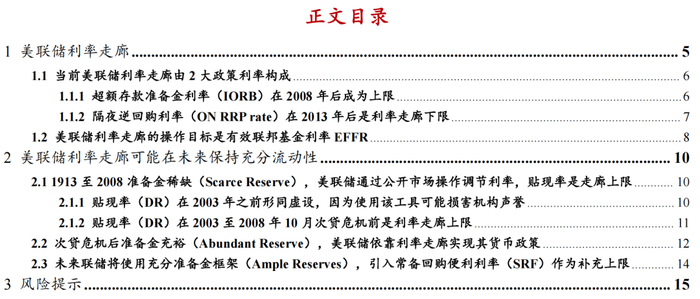 2.3未来联储将使用充分准备金框架(Ample Reserves),引入常备回购便利利率(SRF)作为补充上限