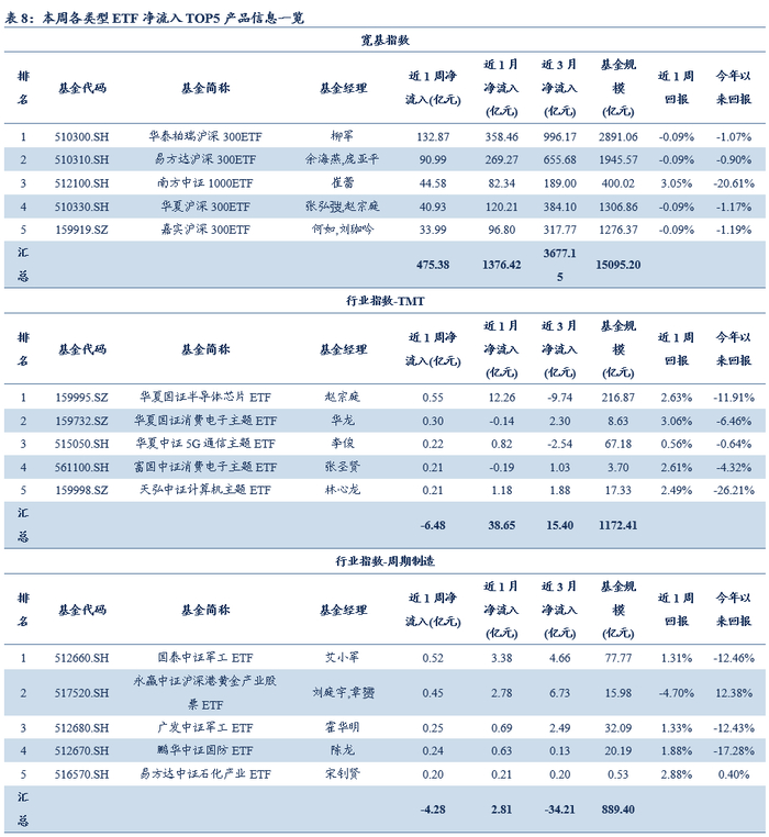 ETF市场跟踪:宽基ETF资金持续大幅净流入,沪深300ETF净流入较多