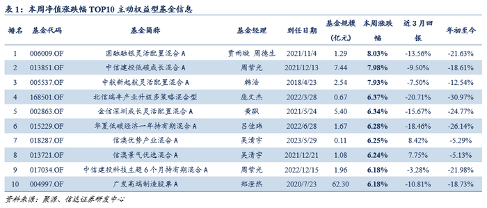 截至2024/8/30,本周主动偏股型基金的净值涨跌幅平均值1.03%。基金总数为4362,上涨数目为3071,占比达到70.40%。其中:净值表现最好的前五只基金分别是国融融银灵活配置混合A、中信建投低碳成长混合A、中航新起航灵活配置混合A、北信瑞丰产业升级多策略混合型、金信深圳成长灵活配置混合A,一周净值涨跌幅分别是8.03%、7.98%、7.93%、6.37%、6.34%。