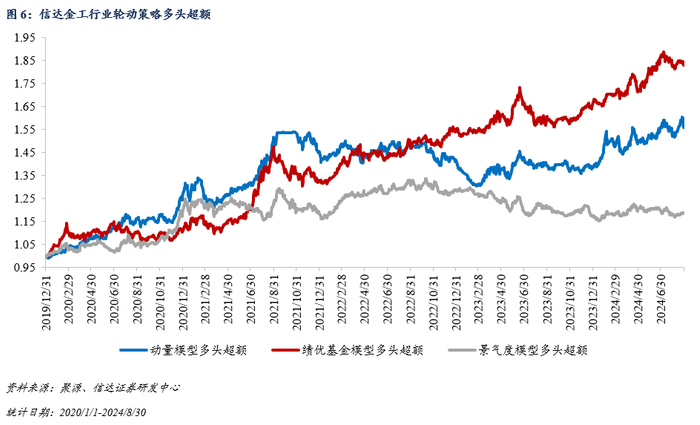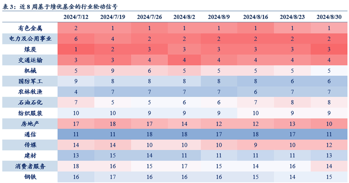 基于绩优基金持仓倾向的边际变化,我们研发了相应行业轮动模型并予以及时跟踪。步入存量市以来,绩优基金行业轮动策略受益于较强的灵活性,其收益风险特征明显好于动量、景气度策略的同期表现;本周绩优基金行业轮动策略获得一定超额,景气度模型略微回调,多头超额收益分别为0.57%、-0.48%。本周绩优基金超配的行业包括有色金属、电力及公用事业、煤炭、机械等,依旧维持在红利风格上的较高暴露度;低配的行业包括食品饮料、非银行金融、银行、电子、电力设备及新能源等。本周景气度行业轮动策略相对超配农林牧渔、有色金属、建材、计算机、钢铁等行业。