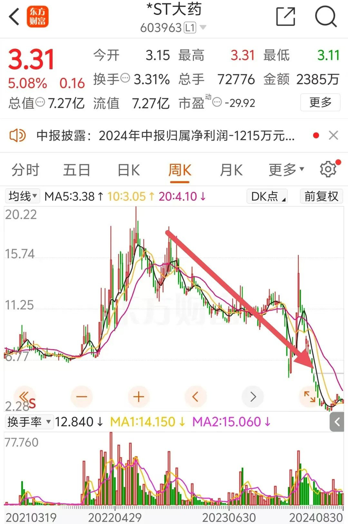 8月30日,大理药业发布2024年半年度报告,报告期内,公司实现营业收入2741万元,同比下降53.99%;净利润亏损1215.44万元。如果下半年公司业绩没有起色,其上市地位将岌岌可危。