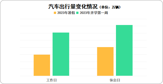 根据历史数据分析,2023年9月开学季(第一周),主城区(绕城高速以内,不含绕城高速)汽车出行量工作日日均较暑假上升7.39%;2023年9月开学季(第一周),主城区汽车出行量休息日日均较暑假上升7.21%。开学后,主城区早晚高峰期接送学生的车流、上班族车流叠加,汽车出行的频次和密度较暑假均有所上升。