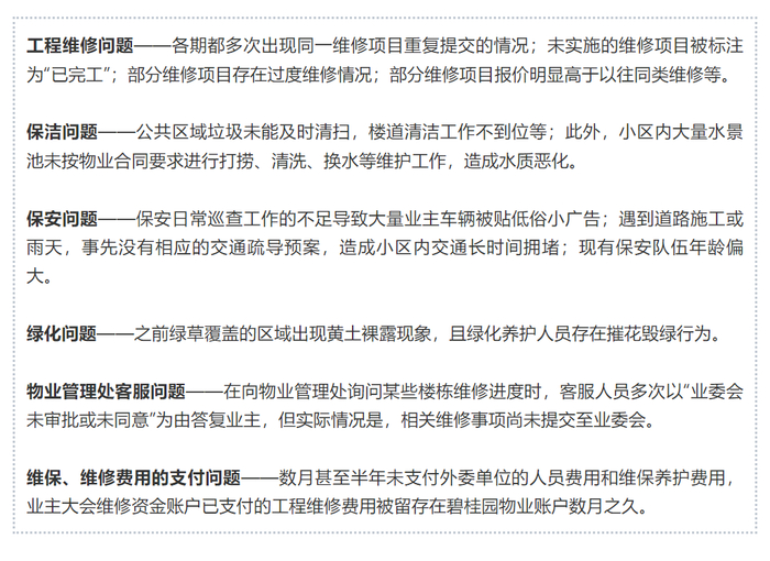 根据上海康城第五届业委会微信公众号披露的内容,业主们对物业公司物业服务质量的不满主要涉及以下几个方面: