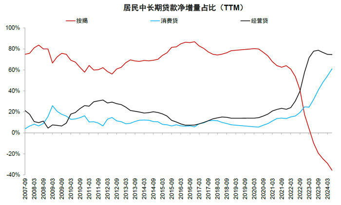 图表4:居民中长期贷款净增量由按揭转为经营消费贷