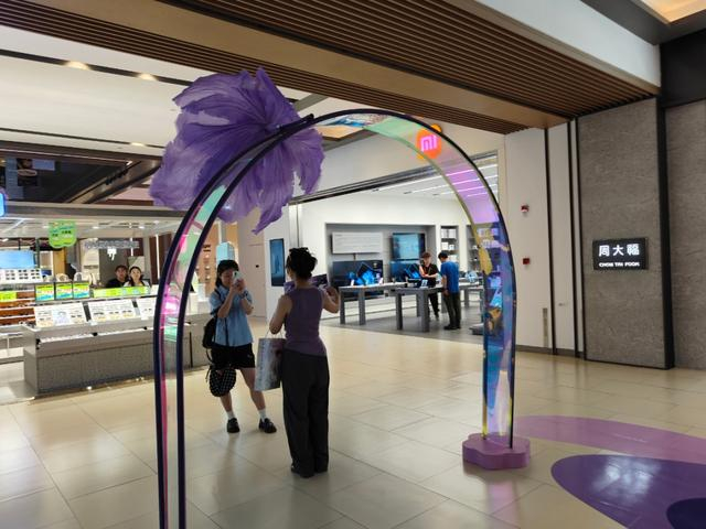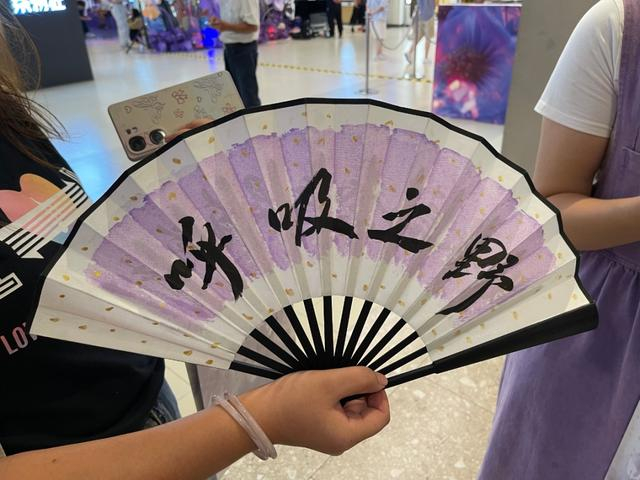 不仅如此,南洋1931还将二楼楼面腾出来举办粉丝活动,粉丝们凭演唱会门票可以领到小礼物,有小扇子、应援手幅等物品,上午十一点不到,二楼就挤满了排队等候礼品的粉丝。有趣的是,队伍中不少小哥哥、小姐姐都穿着紫色系的衣服,紫色的T恤、紫色的裙子,还有母女俩穿着紫色亲子装,和南洋1931的紫色“花路”相映成趣。