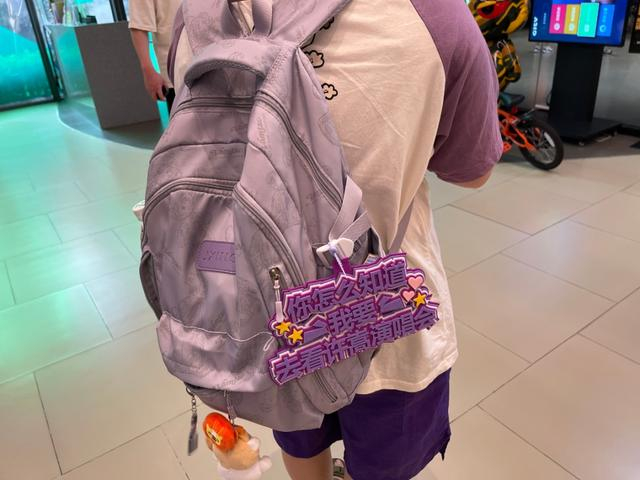 当被问及为何穿紫色衣服,是否是偶像的应援色时,粉丝们礼貌回应,“不是哦”。他们告诉记者,许嵩的应援色是蓝色,而之所以穿上紫色的衣服,是因为许嵩有一首歌里面提到了“妹妹说紫色很有韵味”,他在演唱时,会和“紫色的弟弟妹妹”打招呼,也是歌手和粉丝之间独特而有趣的情感交流方式。
