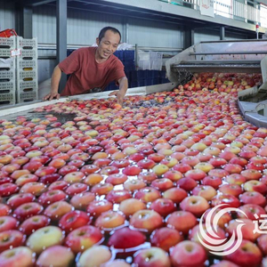 8月27日上午,记者步入皓美公司出口水果分选包装车间时,一条智能化果品分选流水线设备正在作业。设备旁,十几名工人各司其职,动作麻利地进行苹果分选辅助工作。