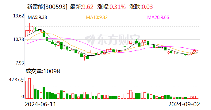 新雷能融资融券信息显示,2024年8月30日融资净买入77.83万元;融资余额1.67亿元,较前一日增加0.47%。