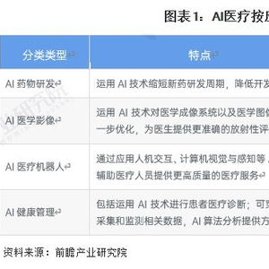 AI医疗是指运用先进的人工智能技术,包括机器学习、自然语音处理、深度学习等技术对药物开发、患者诊疗等环节进行智能化管理和升级,从而提高医疗服务的效率和质量。AI医疗根据AI赋能场景和应用场景的不同,可以分为AI药物研发、AI医学影像、AI医疗机器人、AI健康管理等。