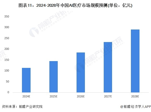 近年来,信息技术的发展,AI应用智能化、高效化、规范化,国民医疗需求的增长,对AI医疗行业需求不断增加。AI医疗市场前景广阔,预计中国AI医疗行业市场规模将会以超过25%的增速保持增长,2028年市场规模将接近300亿元。