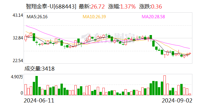 2023年6月,智翔金泰正式登陆科创板。值得一提的是,彼时智翔金泰科创板上市申请符合了科创板五套上市标准中的第五套标准,即预计市值不低于人民币40亿元,且主要业务或产品需经国家有关部门批准,市场空间大,并已取得阶段性成果。