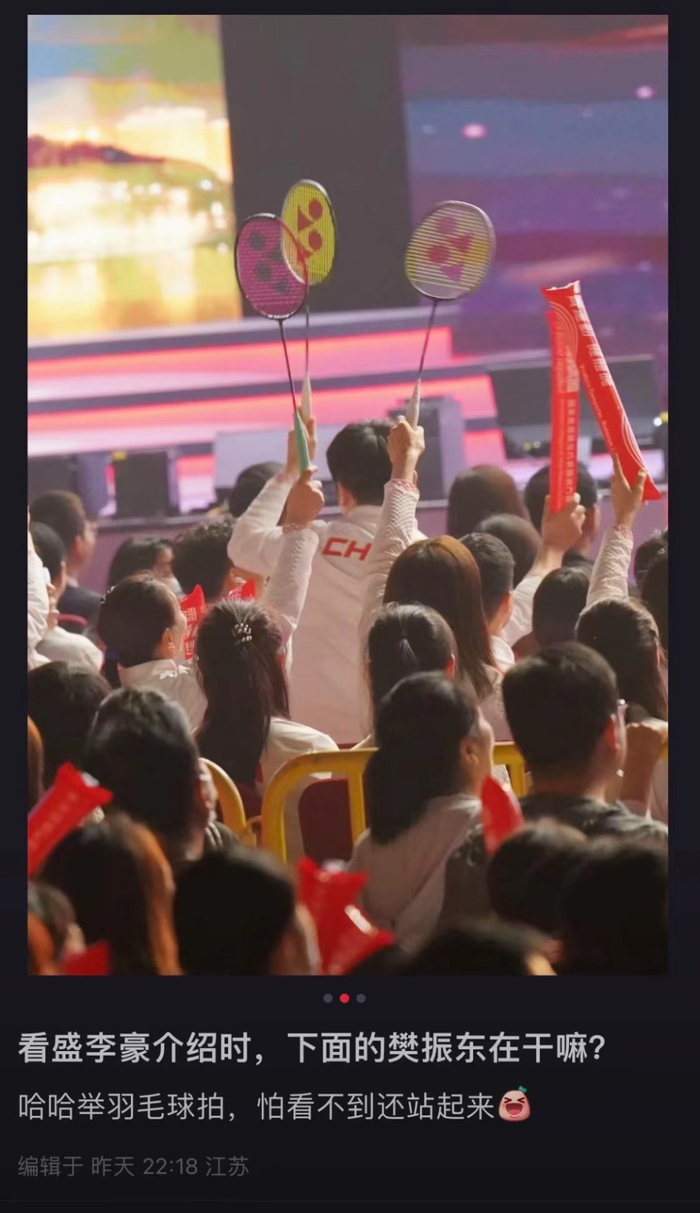 又现名场面!樊振东“贴脸开大”,举羽毛球拍为盛李豪应援!
