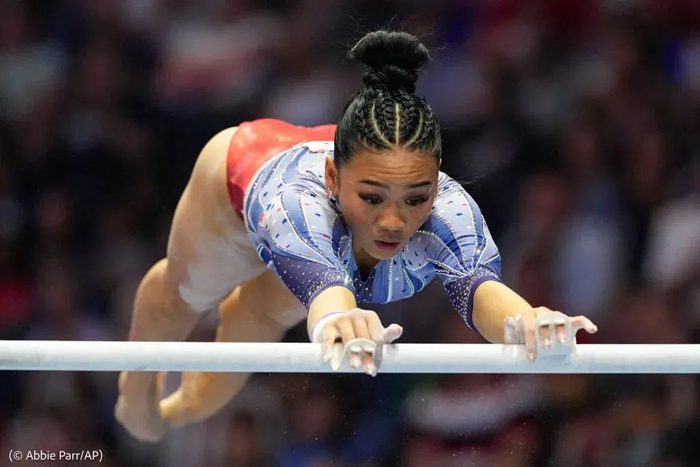 李苏妮 (Suni Lee) 在明尼阿波利斯举行的2024年美国体操奥运会选拔赛上参加高低杠比赛 / Abbie Parr/AP
