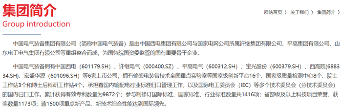 中国电气装备2021年9月25日在上海正式揭牌成立,是由中国西电集团有限公司与国家电网公司所属许继集团有限公司、平高集团有限公司、山东电工电气集团有限公司等重组整合而成,为国务院国资委监管的国有重要骨干企业。