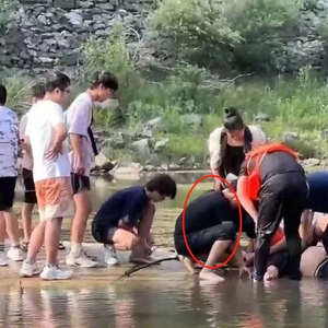 焦柏铭跑到岸边,发现穿着救生衣的男人拖拽的动作愈发艰难,虽然距离岸边只有十几米,但水流湍急,不断往下冲,他精疲力竭,只能暂时踩住一块滑溜溜的石头,艰难地伸出头,向岸边求助:“马上踩不住了,赶紧想想办法!”