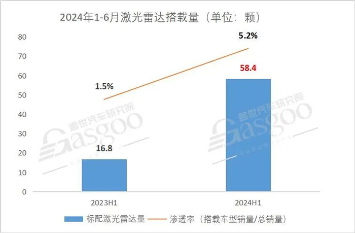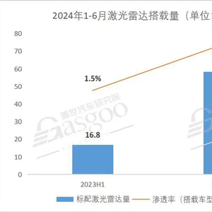 根据盖世汽车研究院智能驾驶配置数据分析,2024年上半年,激光雷达市场呈现出爆发式增长态势,搭载量已达到惊人的58.4万颗,超过了去年全年的搭载量,2024全年预计会突破130万颗。
