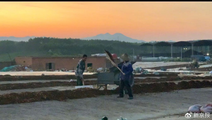 8月底的一天,新京报记者按照谢老板发来的定位,从高峰市场出发,7分钟的车程,由公路拐进一条无名小路后,记者找到了谢老板的晒场。