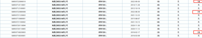 券商中国记者注意到,不少头部投行公示的保荐代表人中,具有“违法失信”记录的人员数量达两位数。例如,截至中证协8月29日数据,海通证券共443名保荐代表人,有21人有“违法失信”记录,其中7人有2条违法失信记录。中信证券626名保代中,17人有“违法失信”记录,其中2人有2条违法失信记录。中信建投607名保代中,19人有“违法失信”记录,其中1人有2条违法失信记录。