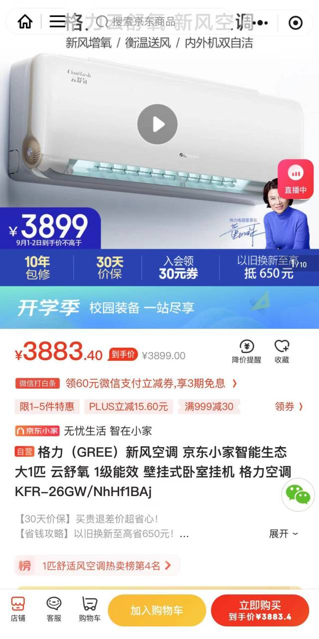 购买1级能效空调直降20%
