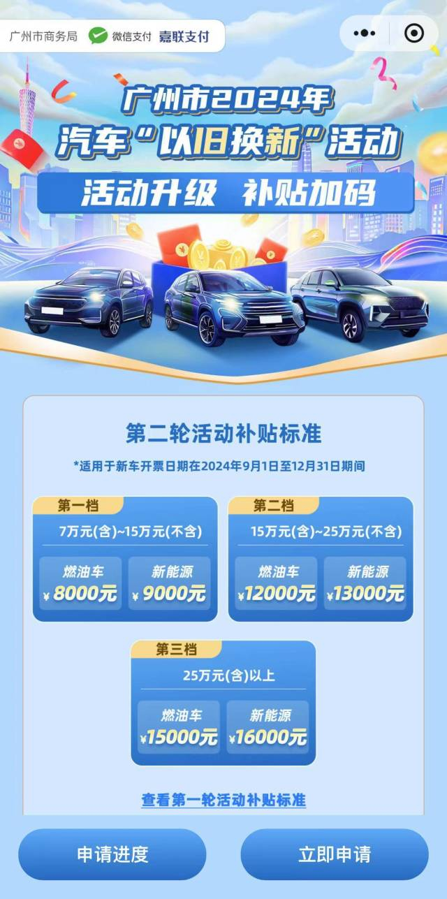 同日,广州市2024年汽车“以旧换新”活动正式上线。