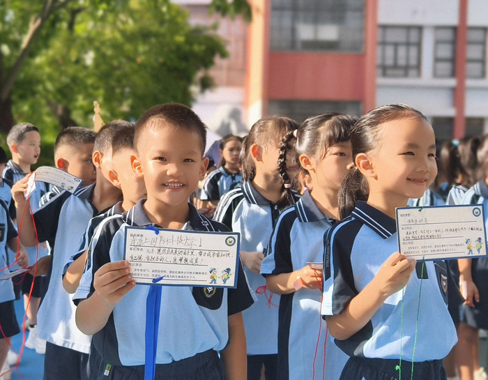 澳华小学一年级孩子们拿着入学“车票”,开启新旅程。