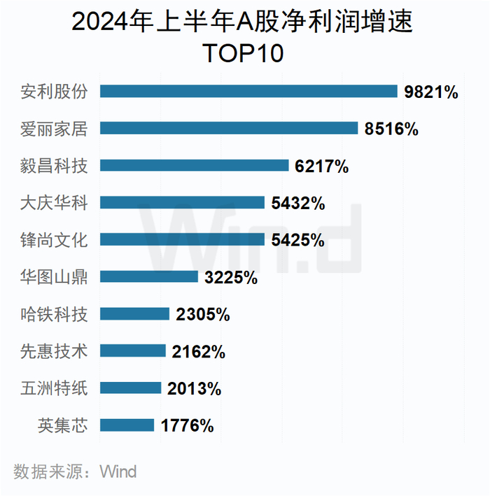 上半年上市公司业绩增速TOP10