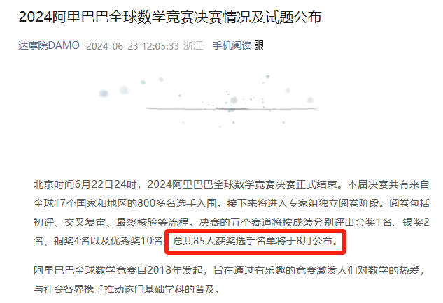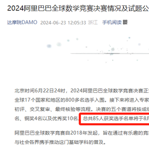 「2024阿里巴巴全球数学竞赛决赛正式结束。本届决赛共有来自全球17个国家和地区的800多名选手入围。