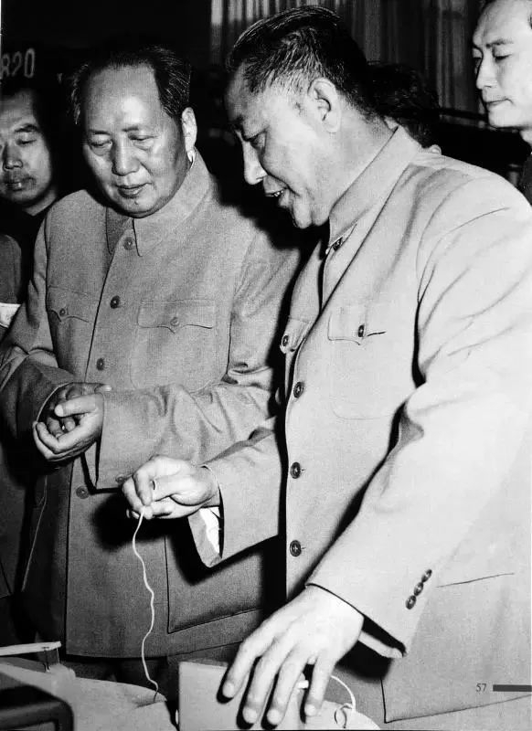 1956年10月6日,时任中国贸促会主席的南汉宸陪毛泽东在北京展览馆参观日本商会展览会