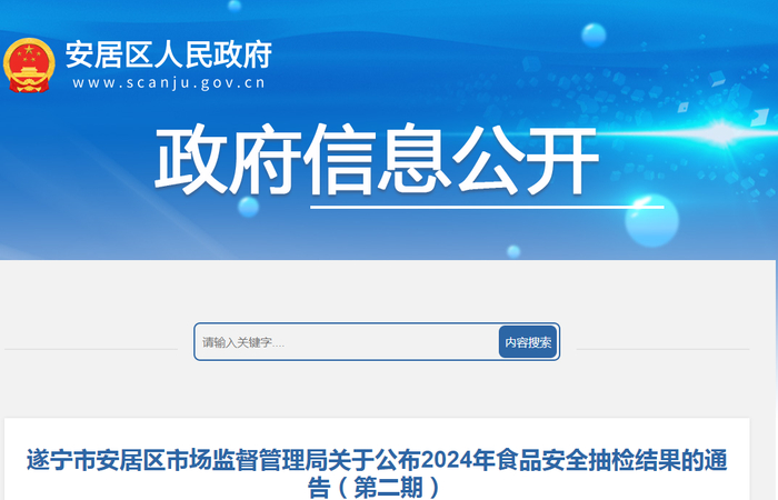 四川省遂宁市安居区市场监督管理局关于公布2024年食品安全抽检结果的通告(第二期)
