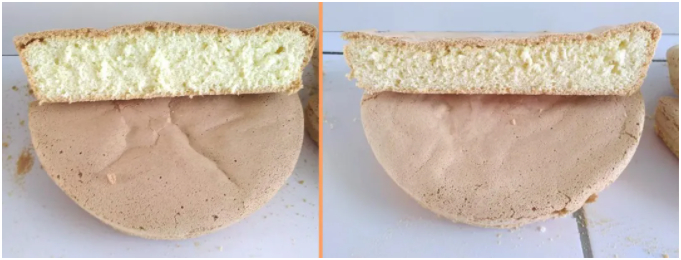 安亦嘉(图左)与西门子(图右)烤海绵蛋糕效果对比