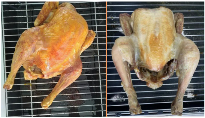 倍科(图左)与伊莱克斯(图右)烤鸡效果对比
