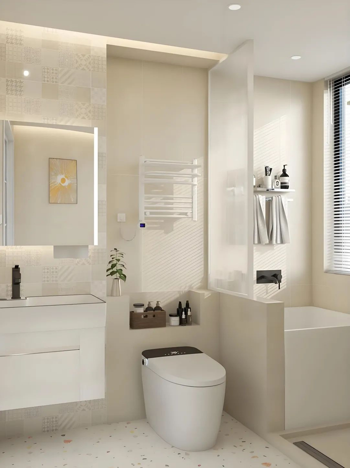 45、主卧卫生间可以装马桶,其它就用蹲坑吧,方便家人也方便客人。