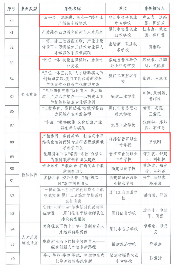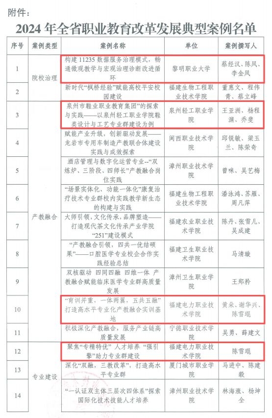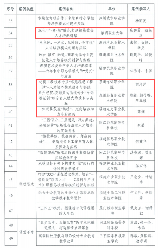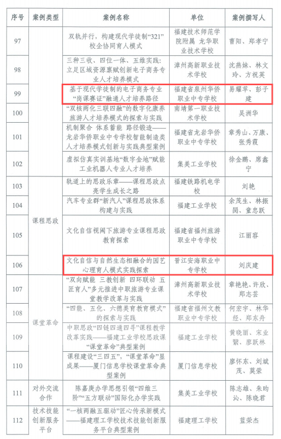 祝贺!泉州这些案例入选职业教育改革发展全省典型→
