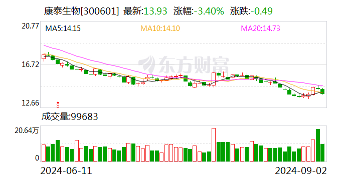东海证券09月02日发布研报称,给予康泰生物(300601.SZ,最新价:13.93元)买入评级。评级理由主要包括:1)2024H1业绩承压,Q2环比改善显著;2)批签发量快速增长,人二倍体狂苗贡献业绩增量;3)研发投入持续加大,产品管线不断丰富。风险提示:疫苗降价风险;产品销售不及预期风险;市场竞争加剧风险。