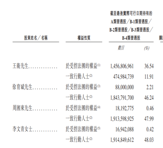 招股书显示,IPO前,王卫,拥有48.45%的投票权,包括:王卫或其持股99.90%的明德控股(林哲莹0.1%),通过Sunford、顺丰控股(002352.SZ)旗下亮越、FortuneBox、YiBao分别持股17.92%、9.15%、7.57%、1.90%,合计持股约36.54%;