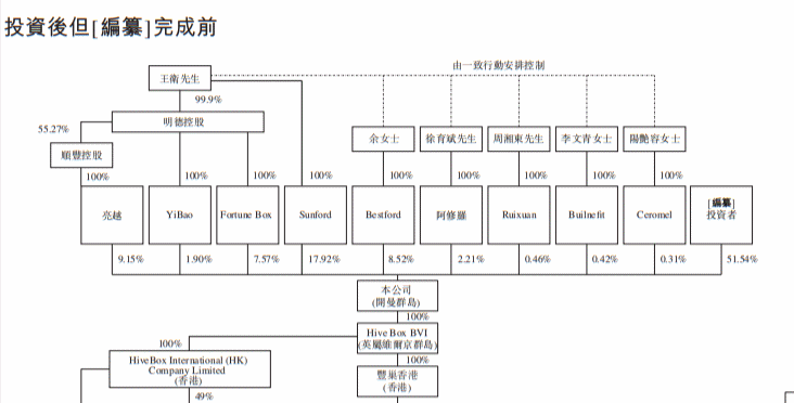 根据一致行动安排,余楚媛、徐育斌、周湘东、李文青、阳艳容通过其各自控制的投资控股公司,分别持股8.52%、2.21%、0.46%、0.42%、0.31%,合计持股约11.91%。