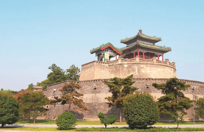 就在古城墙的正南边,