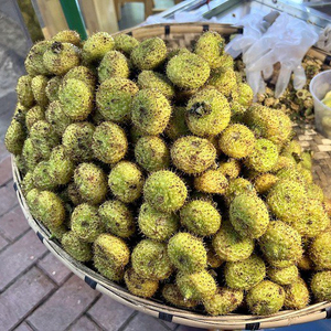 刺梨是缫丝花的果实,属蔷薇科,原产于中国的西南地区,贵州的刺梨产量丰富而品质好。这种水果偏球形,外表有密刺,成熟时为黄色。生吃口感味酸涩,但它的维生素C、多酚和黄酮,以及SOD(超氧化物歧化酶)含量突出,在一般水果范围内可以“称王”。