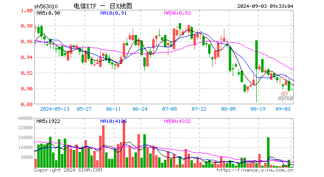 电信ETF(563010)开盘涨0.22%,重仓股中国移动涨0.05%,中国电信跌0.32%