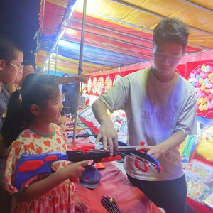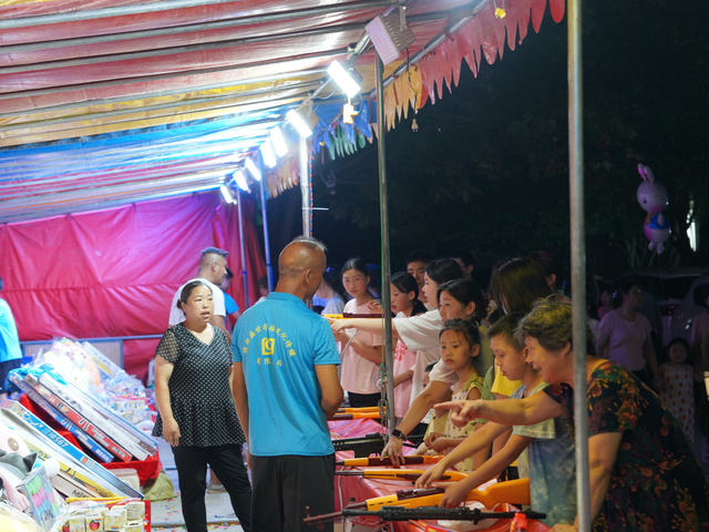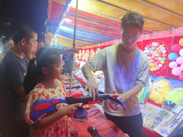在夜市的另一端,游乐区同样人头攒动。弹珠、蹦蹦床、射击游戏等各式娱乐设施让孩子们兴奋不已。家长们则在一旁陪伴孩子玩耍,或拍照留念,享受着幸福的亲子时光。8岁的小朋友唐若曦开心地分享着自己的收获:“今天我和妈妈来到这里玩,观看了魔术表演,吃了好吃的,我觉得非常有趣,希望妈妈下次还能带我来这里玩。”