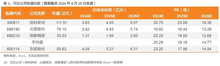 根据主营业务,我们选取软磁材料公司铂科新材、云路股份以及金属结构件公司统联精密作为可比公司,根据Wind一致预期,可比公司2024年平均PE为25x,其中铂科新材2024年PE为31x;根据模型我们测算公司2024年 PE为23,低于行业平均,远低于铂科新材。作为国内粉末冶金新材料行业龙头,公司三大业务亮点纷呈,多方位优势显著,其中MIM主要下游消费电子存在反转预期,折叠屏铰链行业进入壁垒高,公司有望充分受益折叠屏手机放量&龙头供应商逻辑,参考行业平均与铂科新材PE,我们给予公司2024年PE 28x,对应市值113亿元,对应目标股价18.3元/股,调整为“买入”评级。