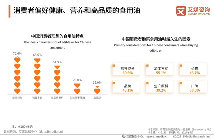 消费者偏好健康、营养和高品质的食用油